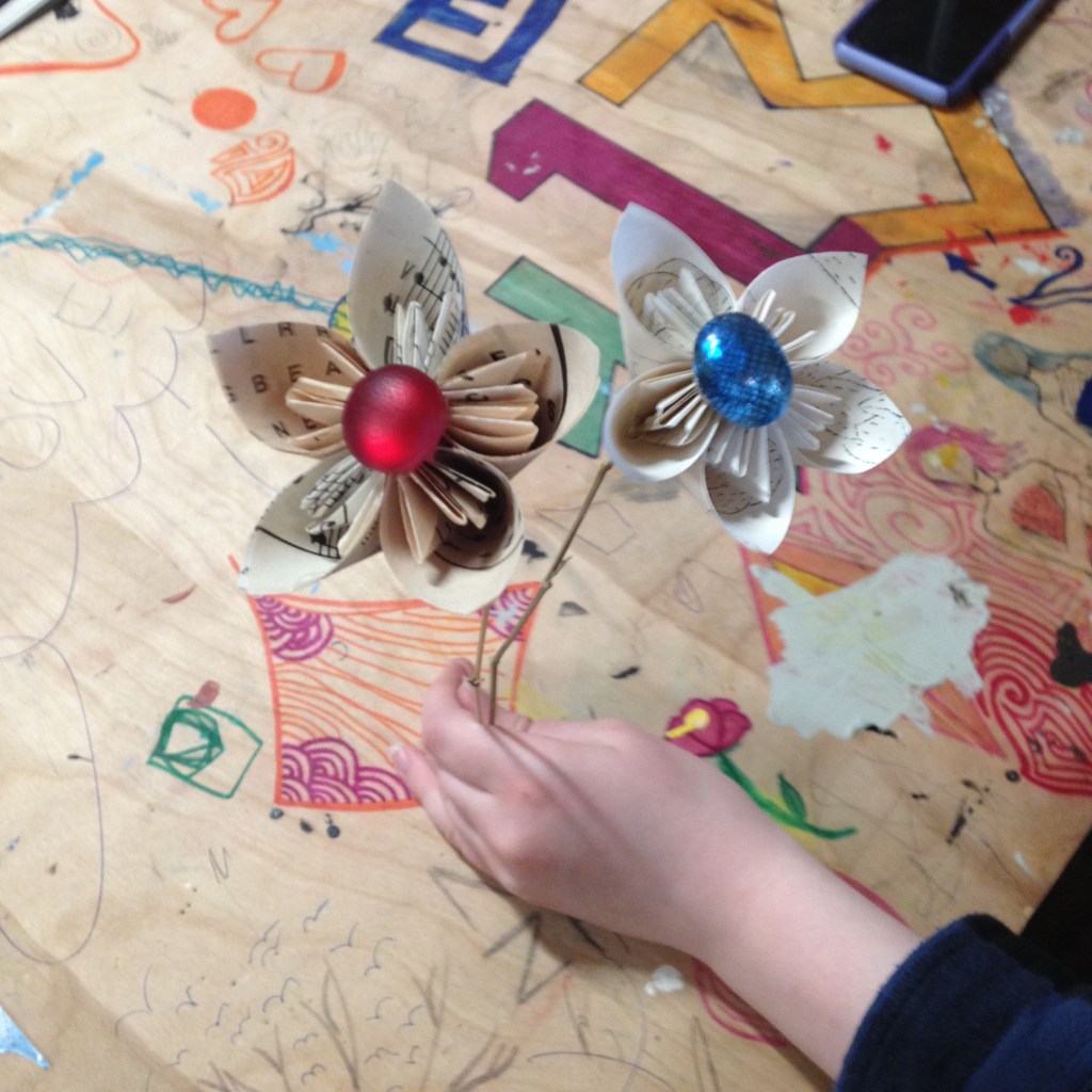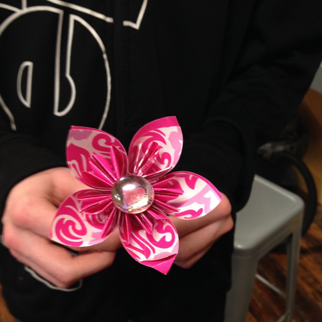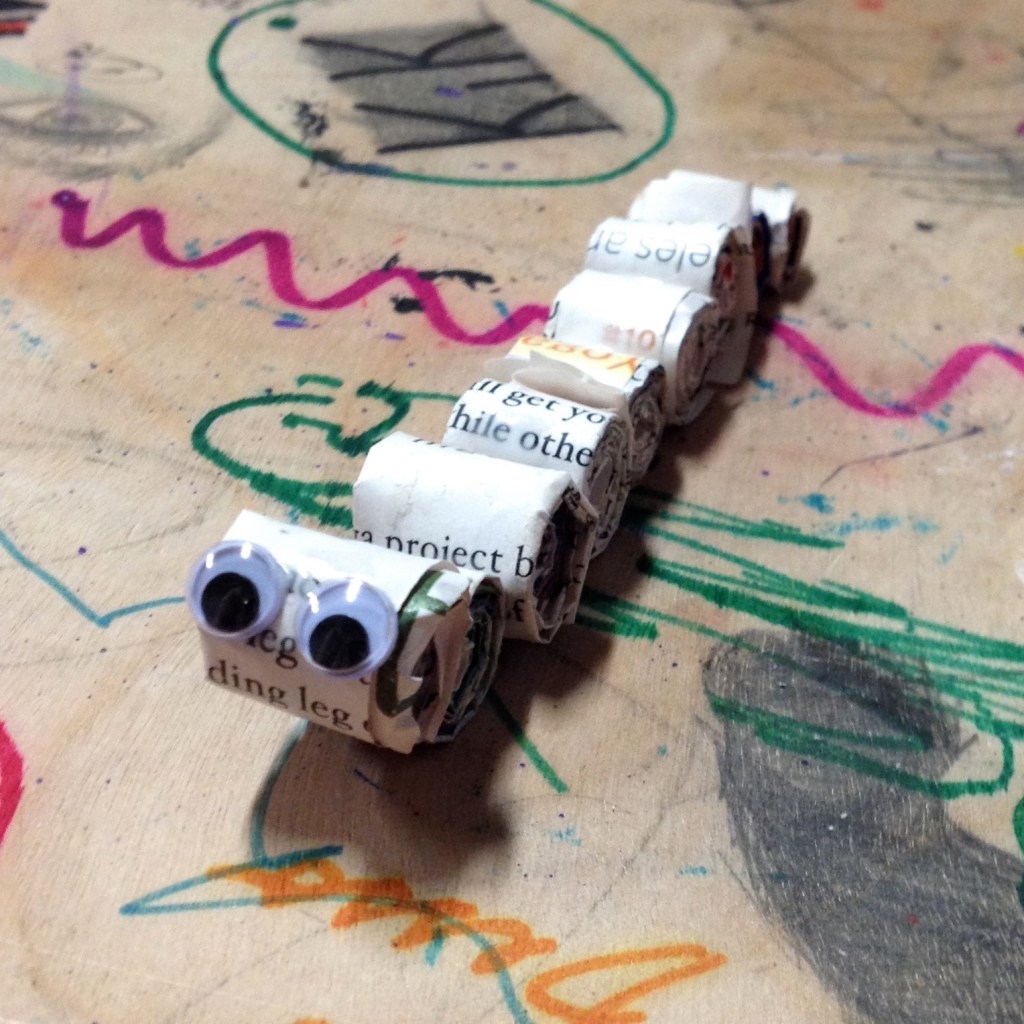 In January 2016, I had the pleasure of teaching an 8-week upcycling course to the teens at LightHouse in Holyoke, MA. LightHouse is not a typical school environment, but it’s an education model that aligns well with my family’s approach to home education and child-directed learning. Each week I brought different creative reuse projects and packed a suitcase on wheels with a variety of materials and tools. The students and I explored ways to repurpose stuff that is often discarded or less valuable in its current state. Including household waste (food cardboard, junk mail, paper, CD’s, magazines, jars & boxes) and textiles (t-shirts, jeans, scrap fabric). We also discussed the importance of reducing waste and brainstormed creative ways to reuse other materials.